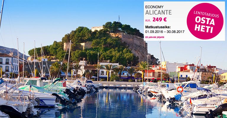 Finnairin lentoja Helsingistä Alicanteen voi varata osoitteesta https://www.finnair.com/fi/fi/destinations/europe/spain/alicante.