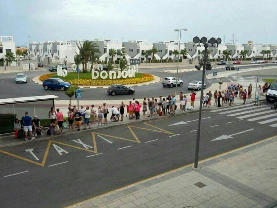 Artikkelin kuvassa Zenia Boulevard -ostoskeskuksen taksitolpan jono, kuva Compormis -puolueen kotisivuilta.