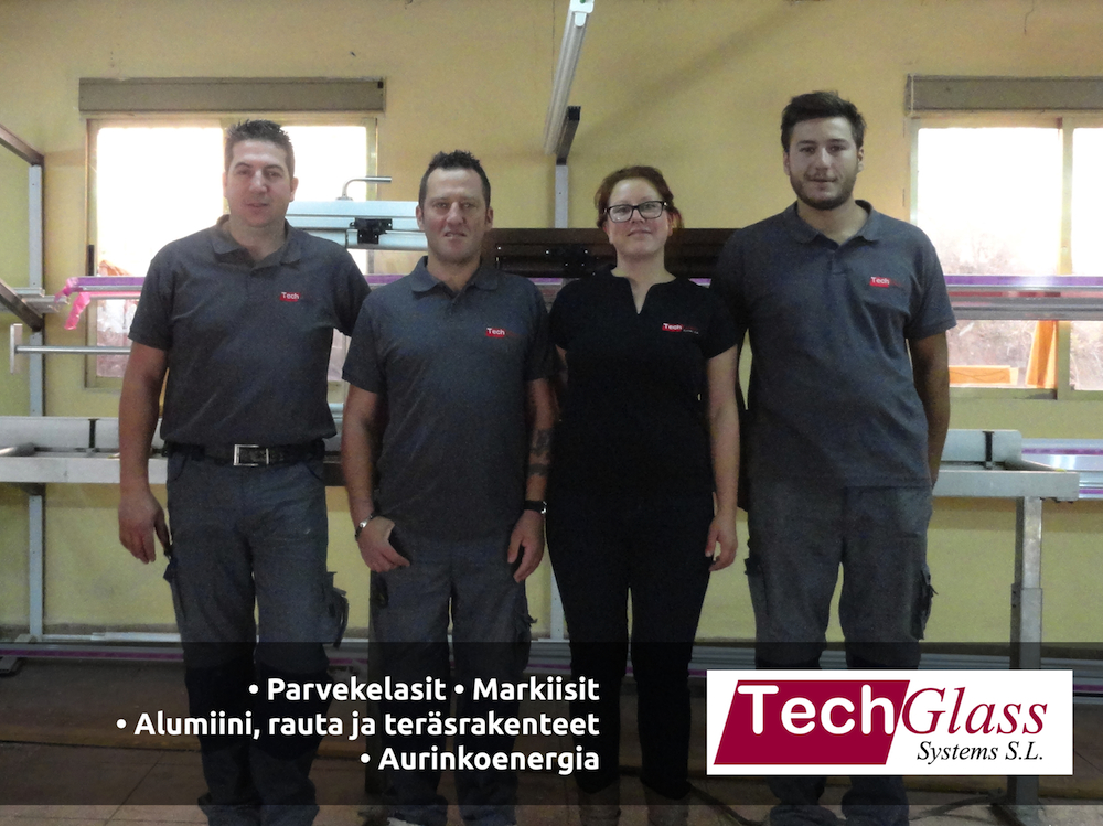 Tech Glass Systems SL on Costa Blancalla operoiva, asumismukavuuden parantamiseen ja turvallisuuteen keskittyvä perheyritys joka toimittaa erilaisia terassi- ja parvekelasituksia sekä mm. alumiinista, raudasta ja teräksestä eri tarkoituksiin ovia ja portteja, kattoja ja muita rakenteita sekä markiiseja ja muita aurinkosuojia. Nyt yritys on laajentamassa toimintaansa aurinkosähköratkaisujen toimittajaksi.